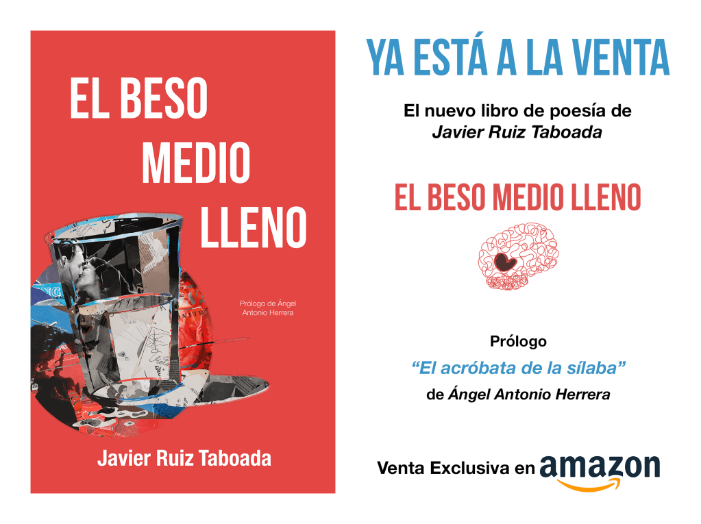 Mi nuevo poemario se llama «El beso medio lleno» y al final me he visto abocado a auto publicarlo por razones que tienen más que ver con el tiempo de demora que le esperaba, por la acumulación de títulos en las editoriales a las que he consultado, que por otros motivos. Cada cosa tiene su momento y, si podemos permitirnos ciertas licencias poéticas, de nosotros depende aprovecharlas. Sé que al hacerlo como Juan Palomo pierdo muchas ayudas y toda la maquinaria que te brinda una editorial al uso. Pierdo las librerías, algo que me duele en el alma, pierdo las firmas, las Ferias y demás promociones intrínsecas a la publicación de un libro aireado por los cauces normales, pero quería publicarlo y, si no era ahora hubiera sido un libro diferente.